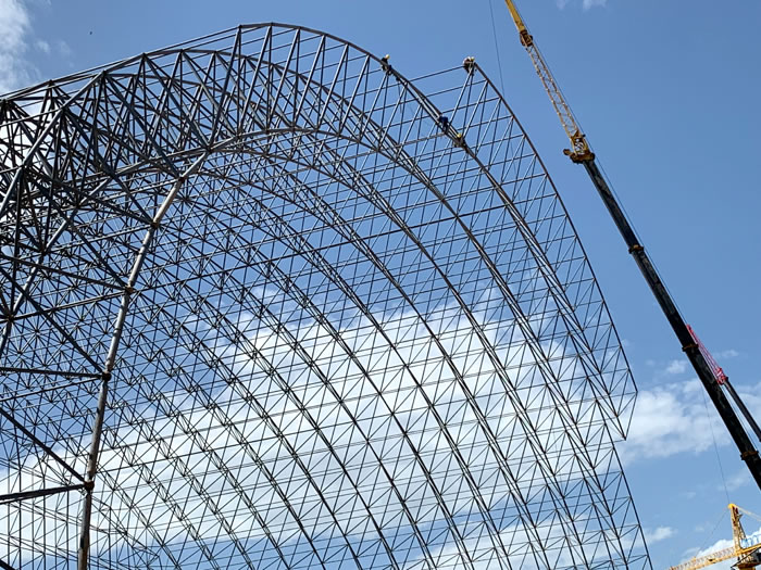 (2)网架加工前应对现场尺寸进行复测,确认无误后方可进行加工、安装;网架制作、运输、安装应遵守《空间网格结构技术规程》JGJ7-2010、《钢网架伊春螺栓球节点》JG/T 10-2009、《钢网架伊春螺栓球节点用高强度螺栓》 GB/T 16939-2016、《伊春钢结构伊春工程伊春施工规范》 GB50755-2012、《伊春钢结构伊春工程施工质量验收标准》 GB50205-2020。